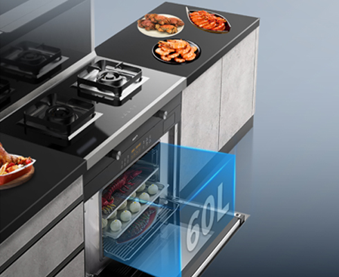 很多消费者选择集成灶的原因都是因为有蒸烤箱,可以上面爆炒,下面蒸烤,既节约时间又节约空间。尊龙凯时集成灶910FT在美食烹饪上面格外用心,60L大容量蒸烤箱,一次可蒸烤8-12人分量,容纳全家人都用餐需求,多层多菜同烹,不串味。外置大容积水箱,工作时缺水无需打开门就能加水,大容积水箱,减少加水频率更省心。